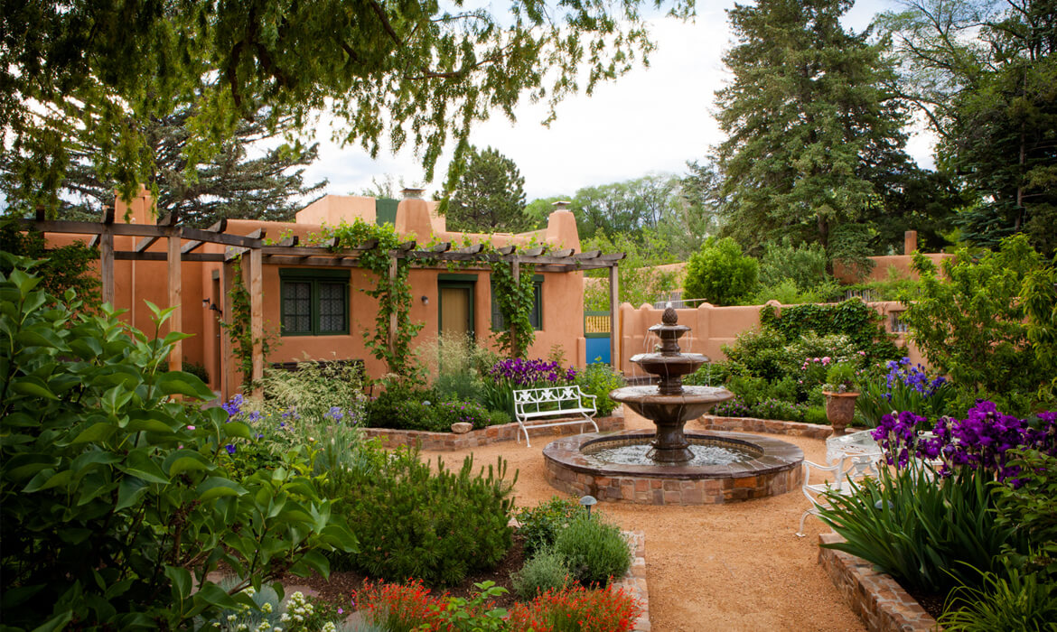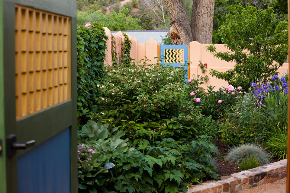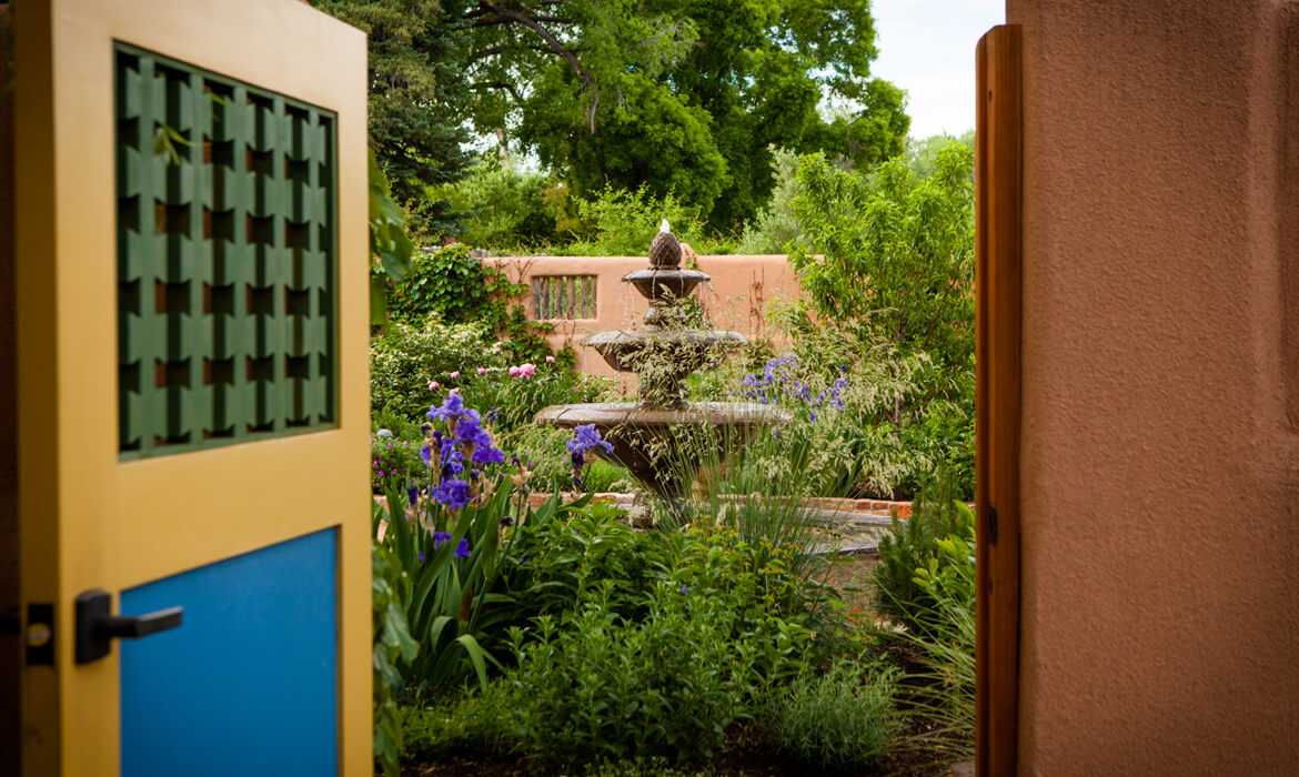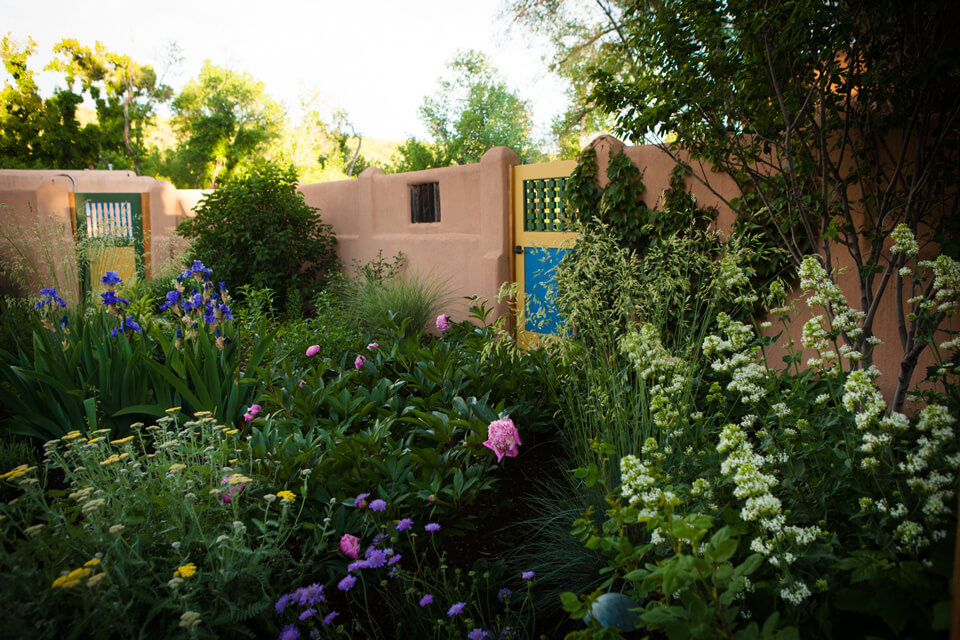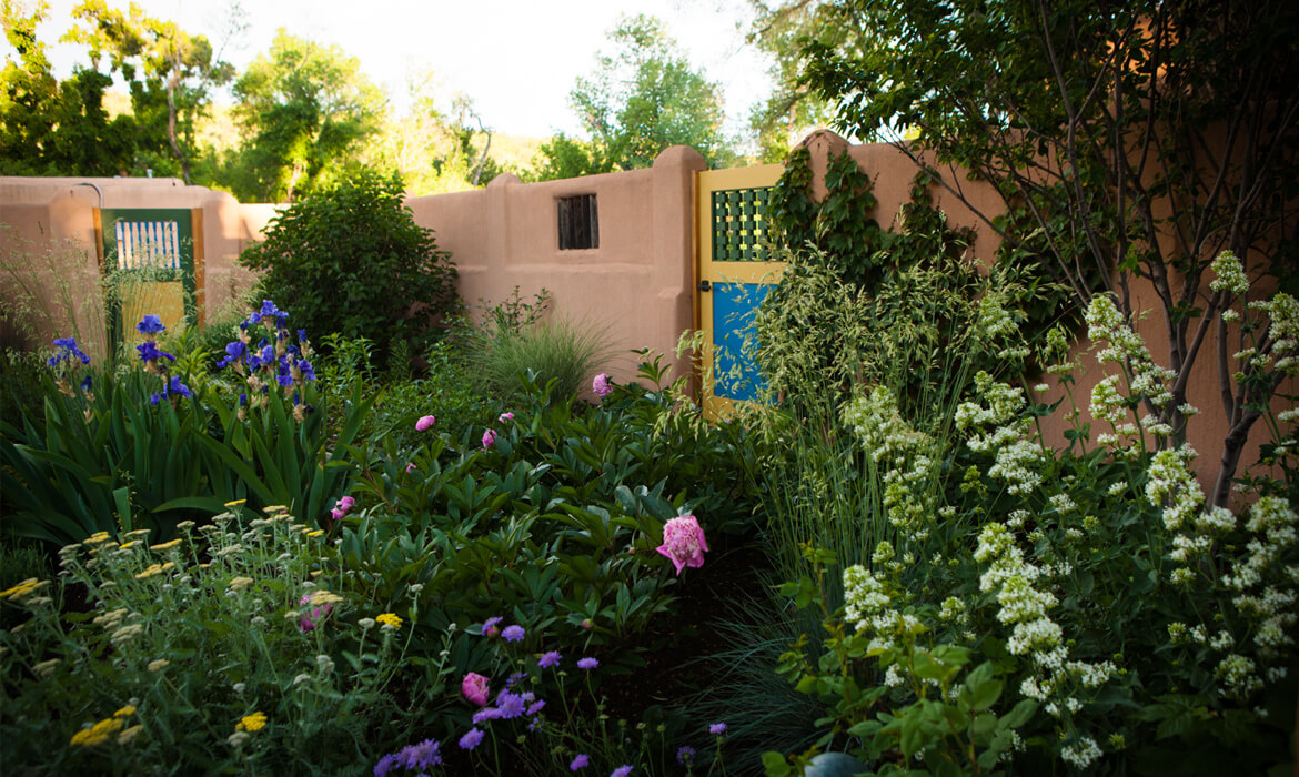 An existing walled courtyard is part of an historic property in the Village of Tesuque, and within the walls an old garden was removed to make way for a new garden done in an old style.