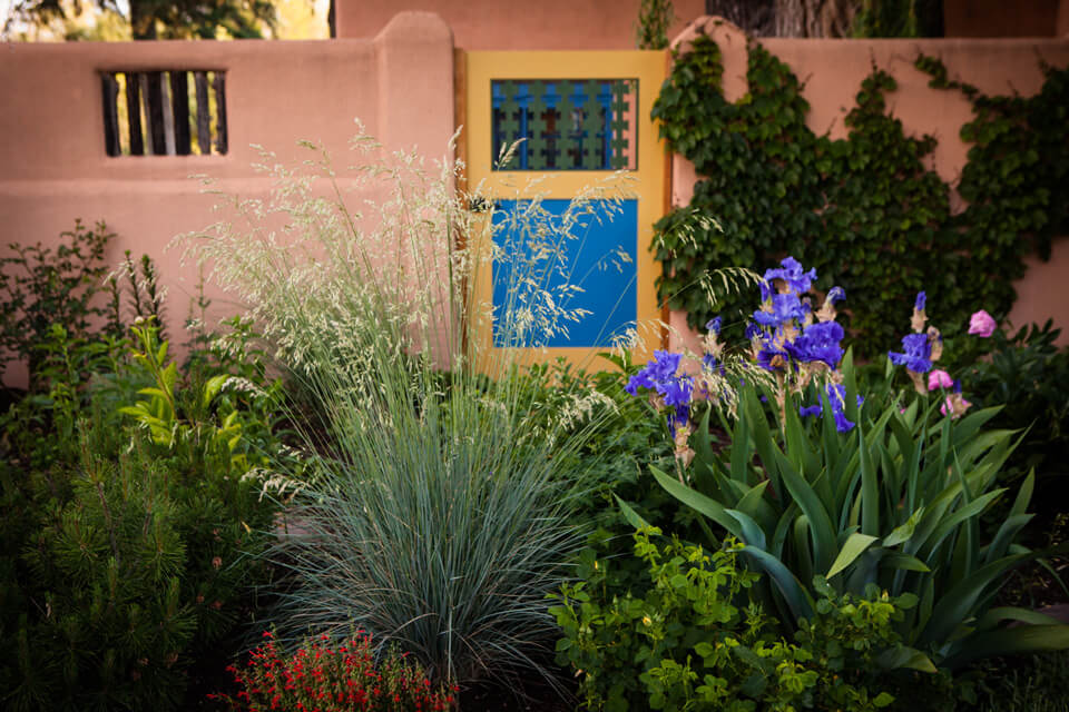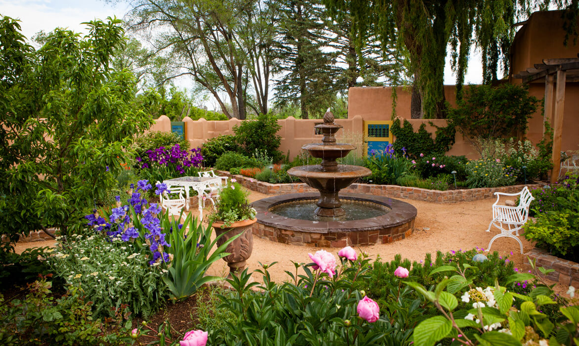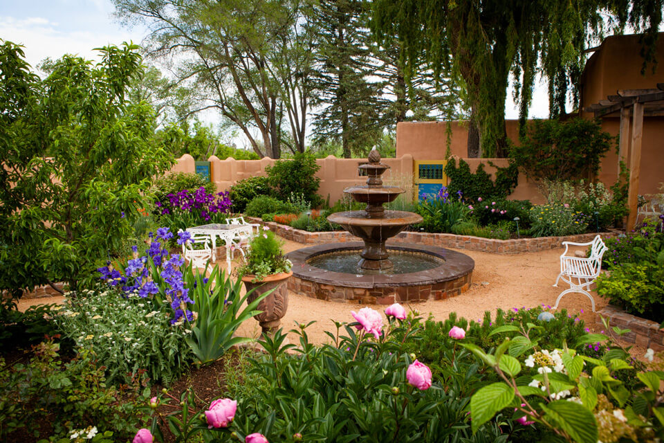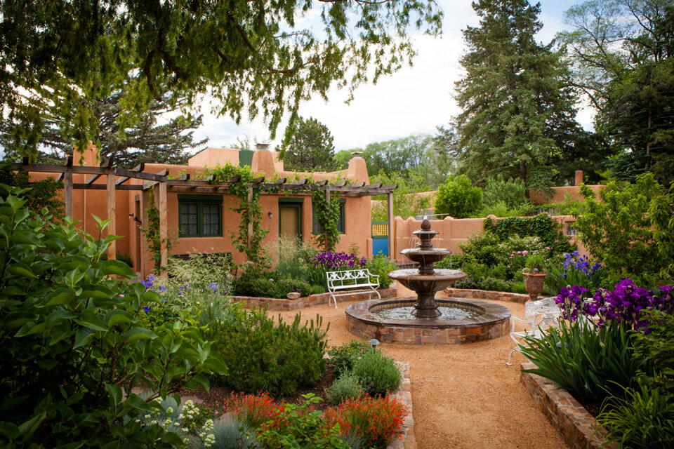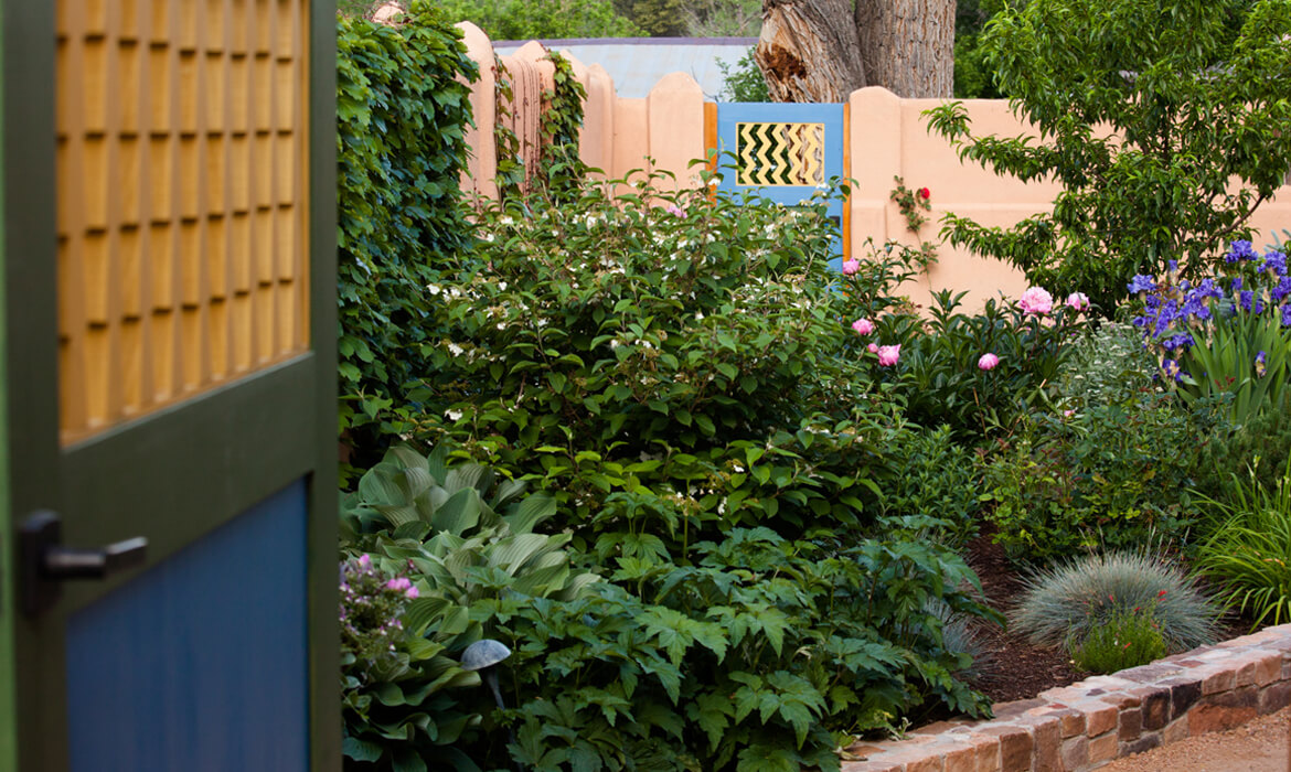 An existing walled courtyard is part of an historic property in the Village of Tesuque, and within the walls an old garden was removed to make way for a new garden done in an old style.